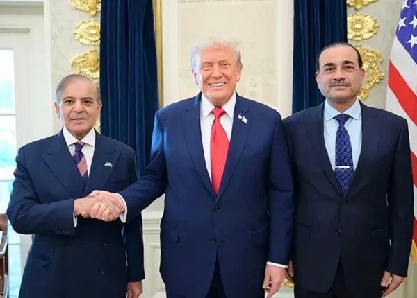 وزیراعظم آفس کے جانب سے جاری اعلامیے کے مطابق وائٹ ہاؤس میں وزیراعظم شہباز شریف اور آرمی چیف فیلڈ مارشل جنرل سید عاصم منیر نے امریکی صدر ڈونلڈ ٹرمپ سے خوشگوار اور دوستانہ ماحول میں ملاقات کی۔