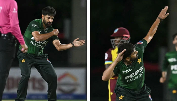 فلوریڈا میں گزشتہ روز ہونے والے پاکستان اور ویسٹ انڈیز کے تیسرے فیصلہ کُن ٹی ٹوئنٹی میچ میں جیول اینڈریو کی وکٹ لینے کے بعد غیر متوقع طور پر انوکھے انداز میں جشن منایا، جو سوشل میڈیا صارفین کو بھا گیا۔
